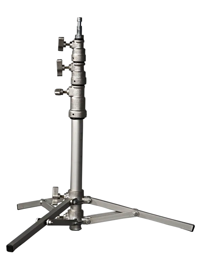 Tripé leve, versátil fácil de armazenar. Muito usado em produções pequenas onde há grande necessidade de rapidez. São 2 estágios com capacidade de 8kg com margem de segurança. Luvas, estrela e tubos em alumínio.